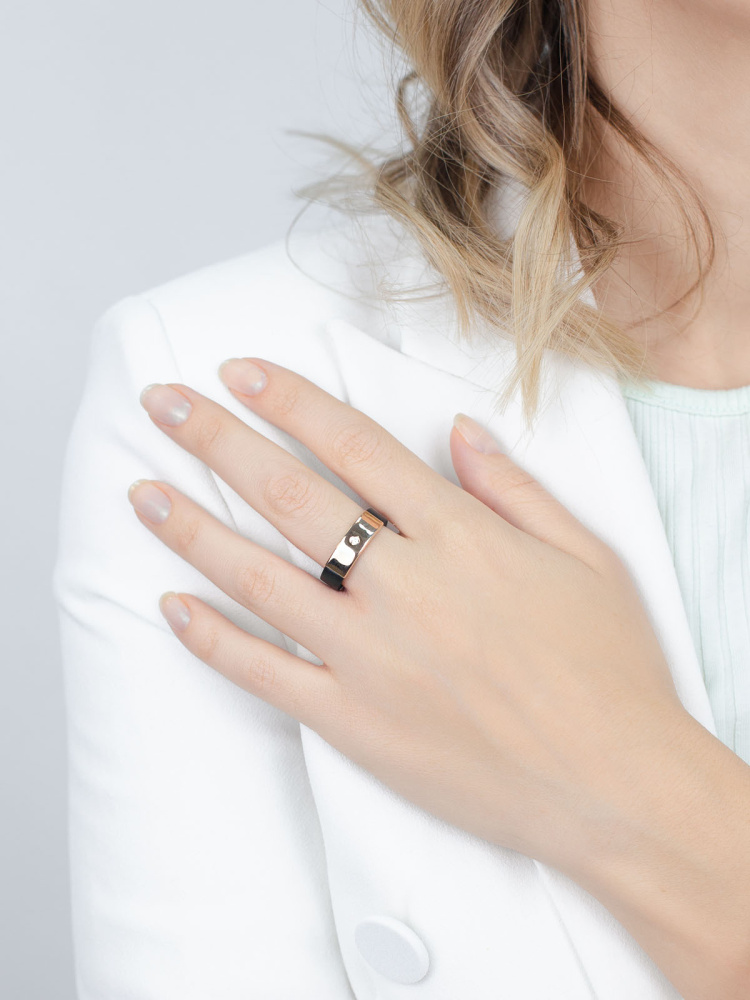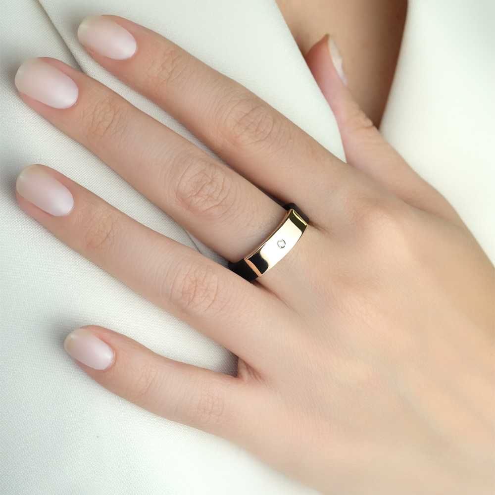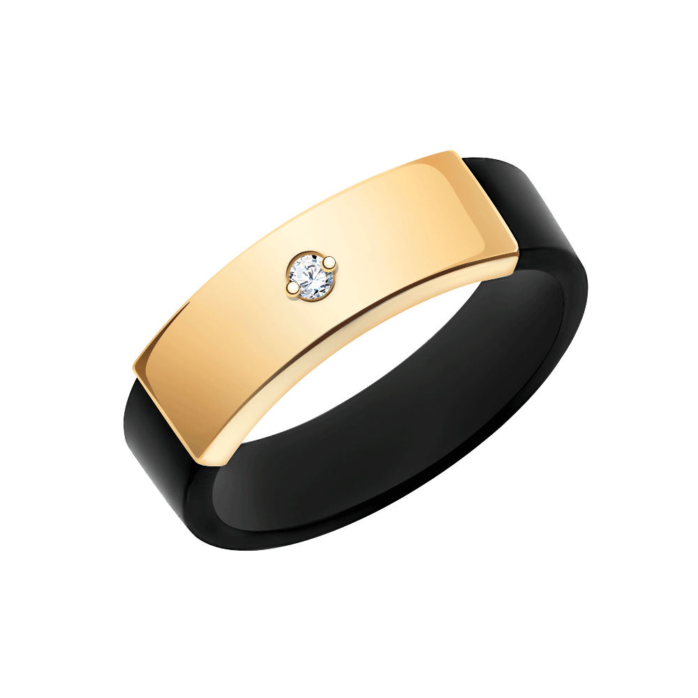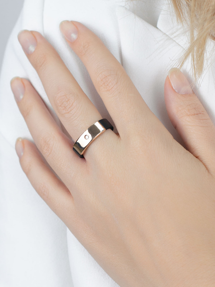 Вид: Кольцо из красного золота с каучуком и фианитом