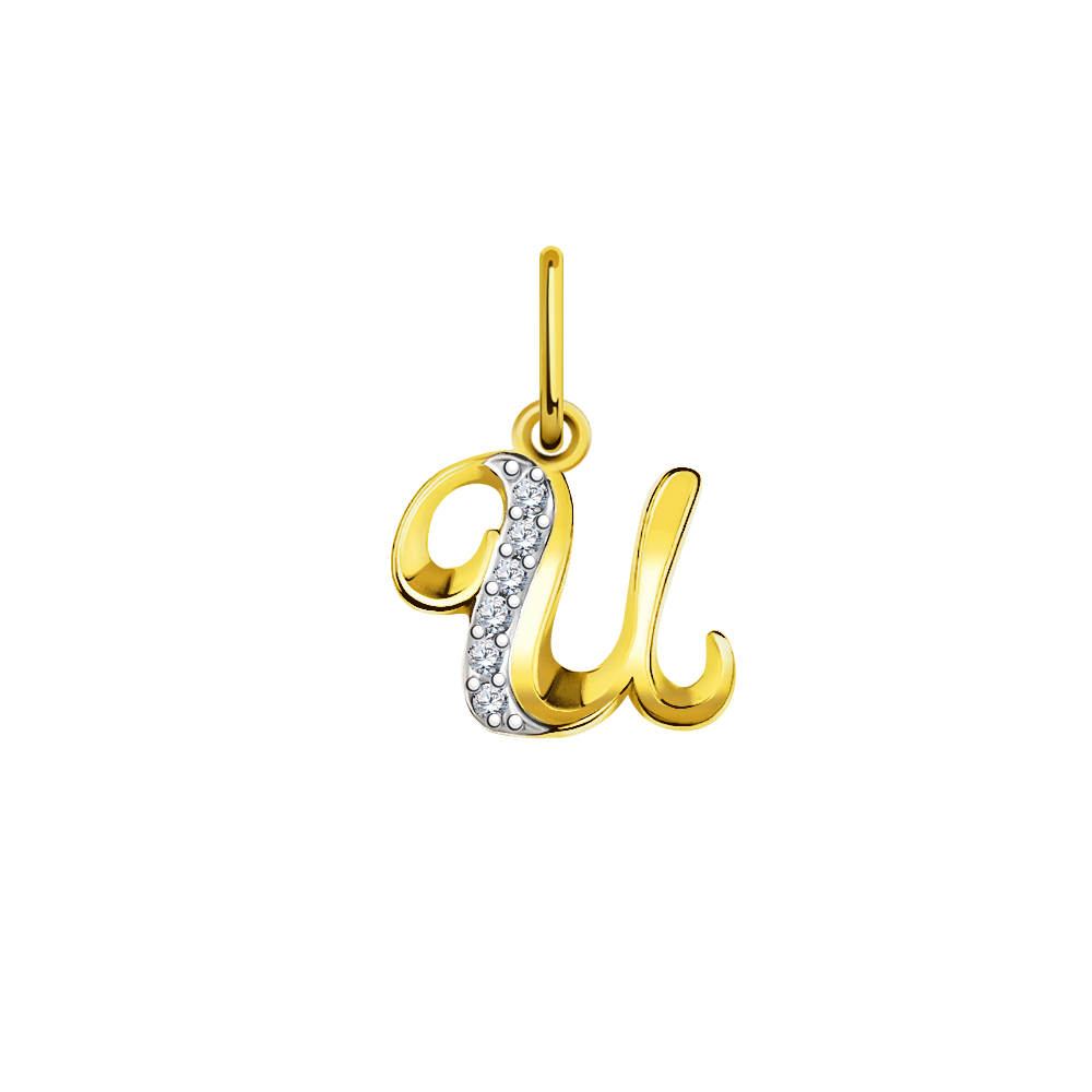Вид: Подвеска Буква "И" из лимонного золота с фианитами