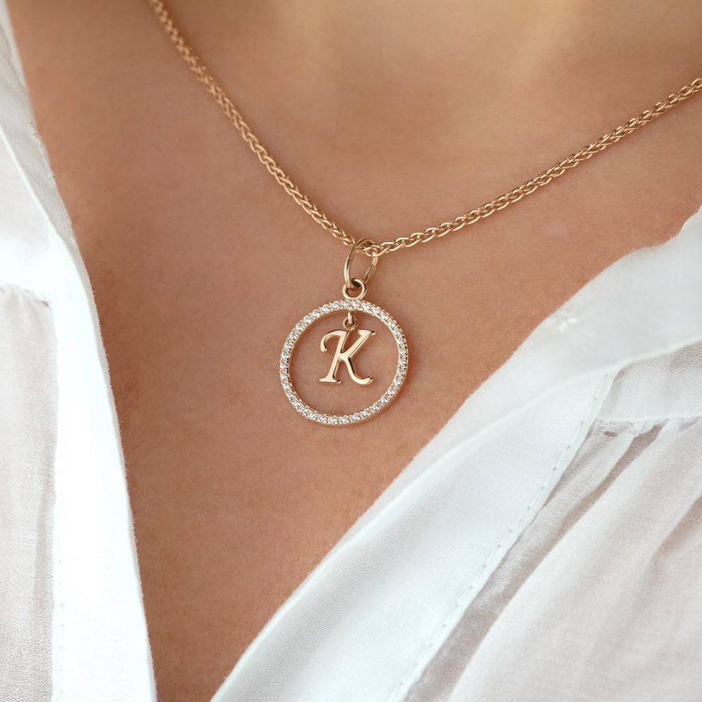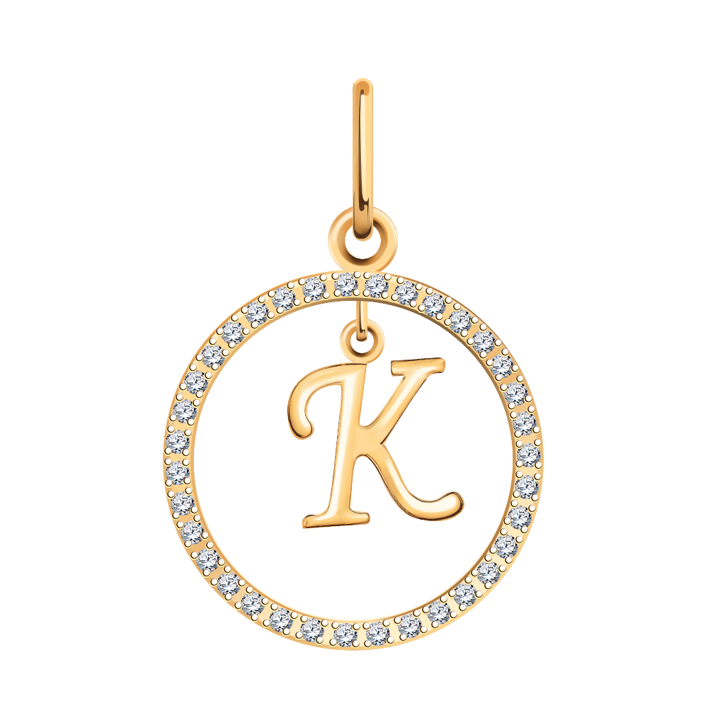 Вид: Подвеска Буква "К" из красного золота с фианитами