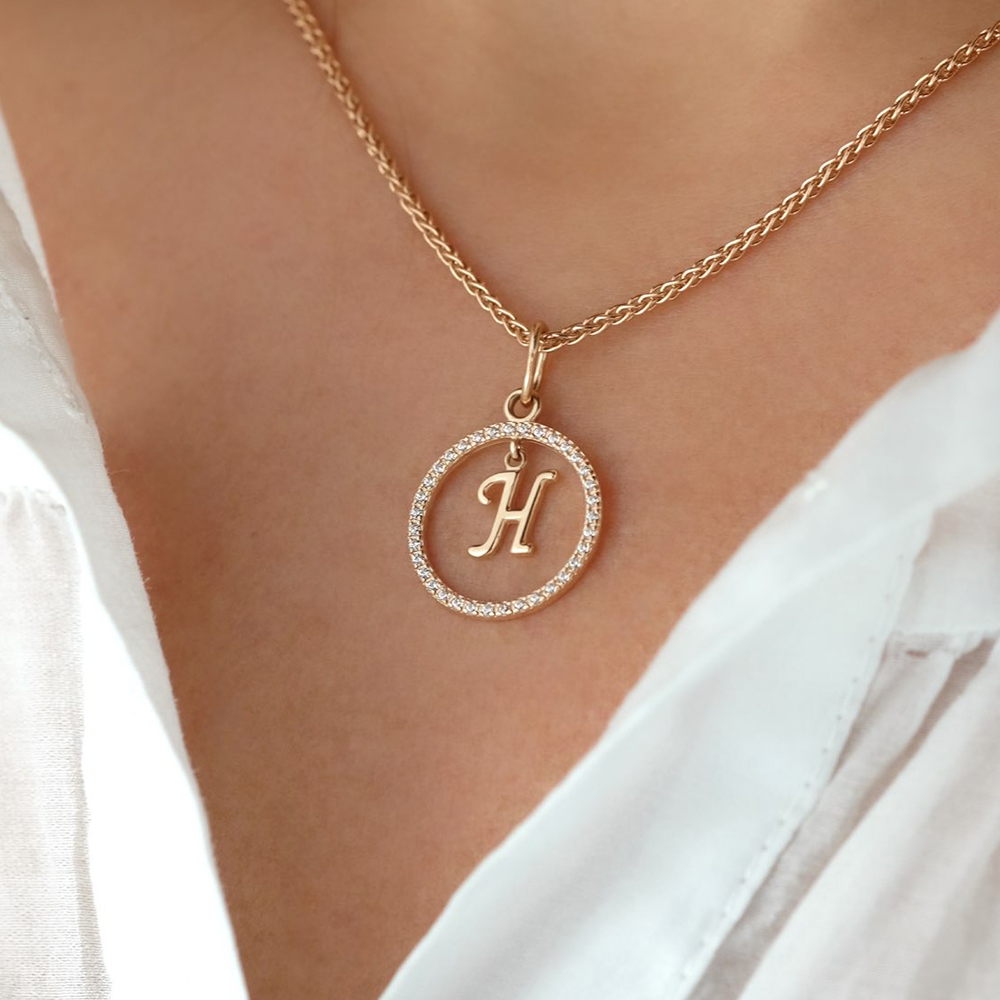 Вид: Подвеска Буква "Н" из красного золота с фианитами