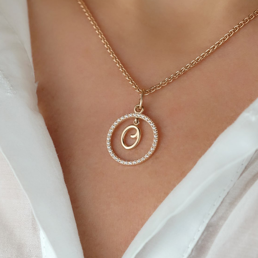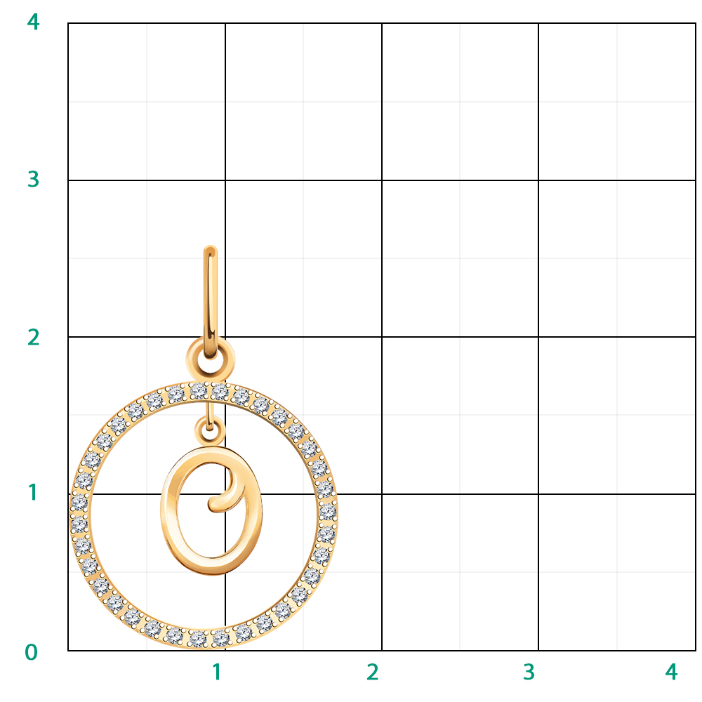 Вид: Подвеска Буква "О" из красного золота с фианитами